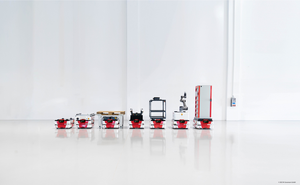 Dank seiner intelligenten Sensorik und präzisen Navigation manövriert der GESSbot auch in engen Gängen und überfüllten Bereichen. Er erkennt Hindernisse und Personen und reagiert situationsabhängig. Das ermöglicht eine direkte Interaktion mit Menschen. Der GESSbot ist einfach zu bedienen und lässt sich intuitiv in bestehende Prozesse integrieren. Sein modularer Aufbau erlaubt es, ihn an spezifische Unternehmensanforderungen anzupassen – sei es für die automatisierte Materialversorgung, den innerbetrieblichen Transport oder die intelligente Vernetzung von Produktionsinseln. In der Ausbaustufe mit einem integrierten Cobot (kollaborativer Roboter) kann er sogar Handhabungsaufgaben wie die Maschinenbestückung übernehmen und so Transport- und Handlingsprozesse effizienter gestalten.