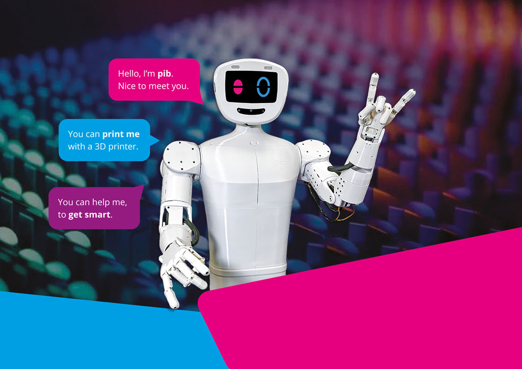 pib ist ein humanoider Roboter aus dem 3D-Drucker. Als Open-Source-Projekt macht er Robotik greifbar und ermöglicht es jedem, moderne Technologie von Grund auf selbst zu erleben – vom Drucken der Bauteile über den Zusammenbau bis hin zur Programmierung.